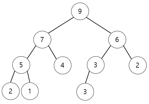 힙은 완전이진트리이다. 위 그림은 힙의 특성을 만족하는 것처럼 보이지만 완전이진트리가 아니기 때문에 힙이 아니다.