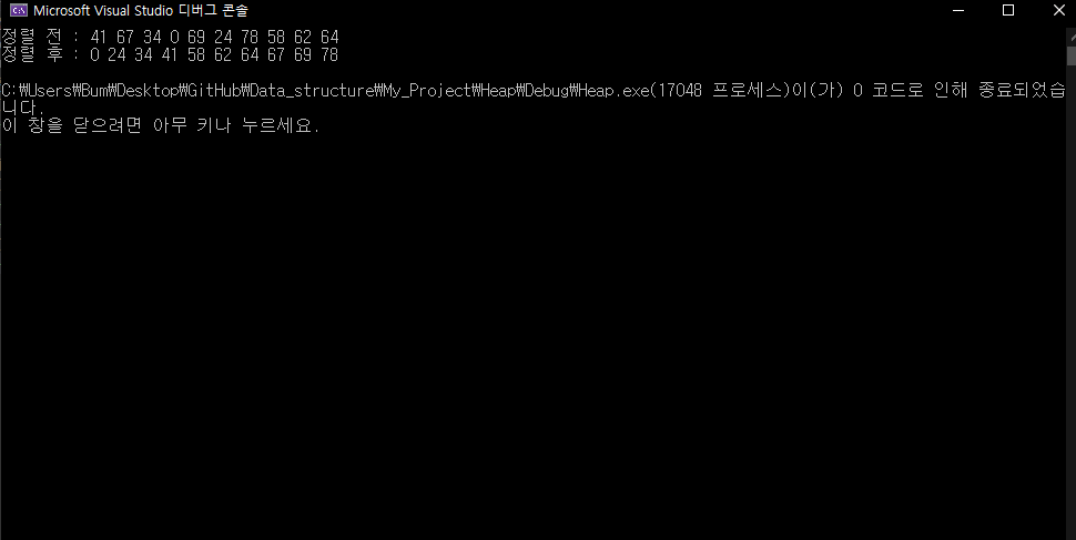 힙을 이용하여 숫자를 정렬할 숫자들을 Insert하고 차례대로 Delete하여 값을 가져오면 임의의 숫자들을 정렬시킬수 있다.