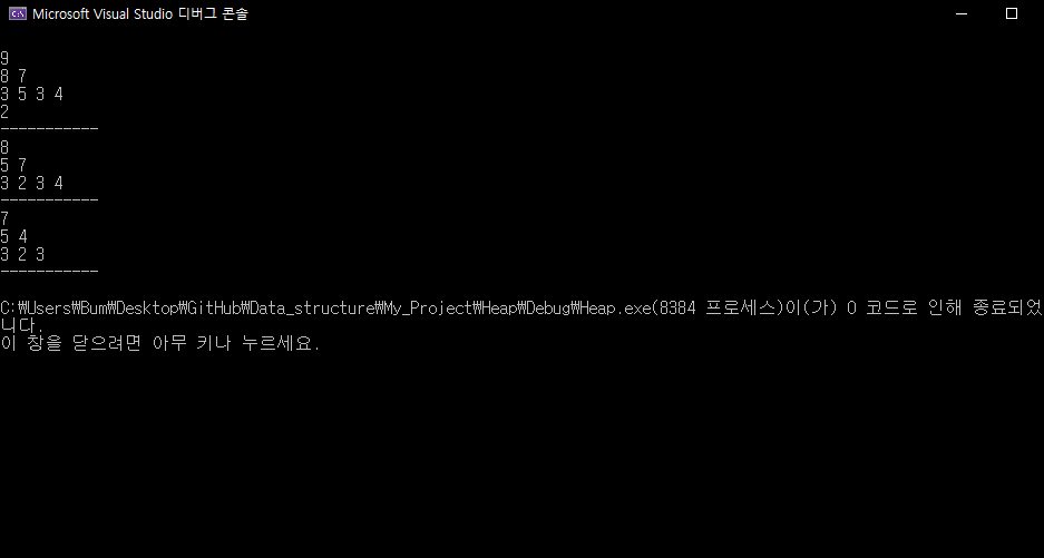 // 인덱스가 힙 크기보다 같거나 커질때 까지 반복