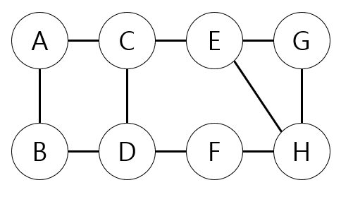 간선에 방향이 표시되지 않은 그래프를 무방향 그래프라 한다. 하나의 간선은 양방향으로 갈수 있는 길을 의미하고 (A, B)와 (B, A)는 동일한 간선이 된다.