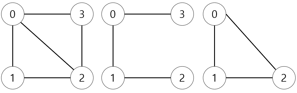 그래프를 구성하는 정점의 집합과 간선의 집합의 부분 집합으로 이루어진 그래프를 부분 그래프라고 한다. 아래 그림은 무방향 그래프(왼쪽)의 부분 그래프(중앙, 오른쪽)을 보여주고 있다.