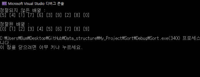cout << "정렬된 배열 : " << endl;