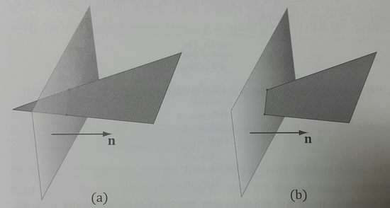 하나의 삼각형에는 면이 두 개 있다. 두 면을 구분하기 위해 Direct3D에서는 다음과 같은 방법을 사용한다.