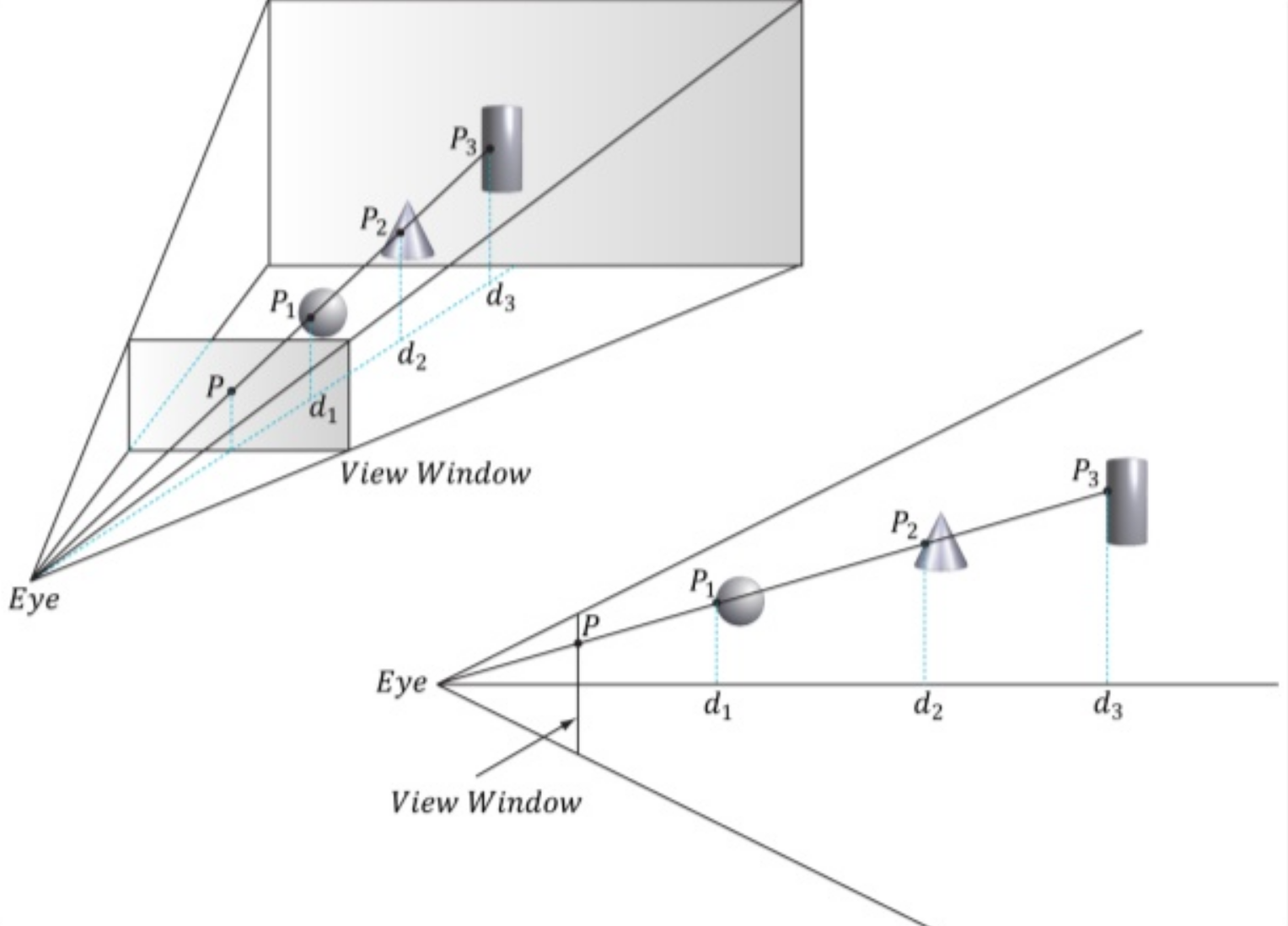 깊이 버퍼링의 작동 방식을 예를 통해서 살펴보도록 하자.