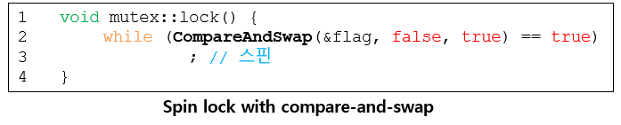Compare-And-Swap을 사용하면 Test-And-Set 방법을 사용했을 때와 같은 방식으로 락을 만들 수 있다. 다음 처럼 말이다.