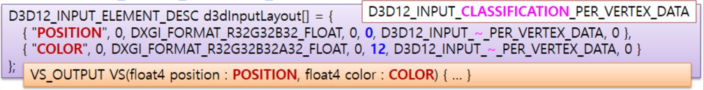일단은 D3D12_INPUT_PER_VERTEX_DATA를 지정한다. 다른 값은 고급 기법에 쓰인다.
