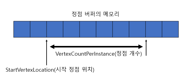 정점 버퍼를 입력 슬롯에 설정하다고 해서 버퍼 정점들이 그려지는 것은 아니다. 단지 그 정점들을 파이프라인에 공급할 준비가 된 것일 뿐이다. 정점들을 실제로 그리려면 다음 메서드를 호출해야 한다.