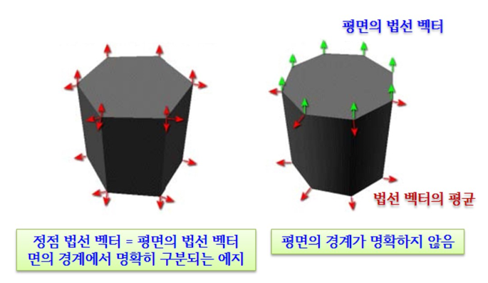조명 계산을 위해서는 삼각형 메시의 표면의 모든 점에서 표면 법선이 필요하다. 표면 법선이 있어야 광선이 메시 표면의 점으로 입사한 각도를 구할 수 있기 때문이다.