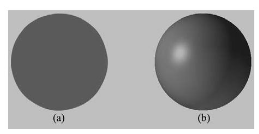 왼쪽은 빛을 비추지 않은 구이고 오른쪽은 빛을 비춘 구이다. 왼쪽 그림은 상당히 평평해 보인다. 사실 구가 아니라 그냥 2차원 원처럼 보인다. 반면 오른쪽의 구는 실제로 3차원의 구처럼 보인다. 이처럼 조명과 음영은 물체의 입체감과 부피감을 묘사하는 데 큰 도움이 된다. 실제로, 인간의 시각적인 인식은 빛과 물체 재질의 상호작용에 의존한다. 따라서 실사적인 묘사 부분의 상당 부분이 물리적으로 정확한 조명 표현이다.