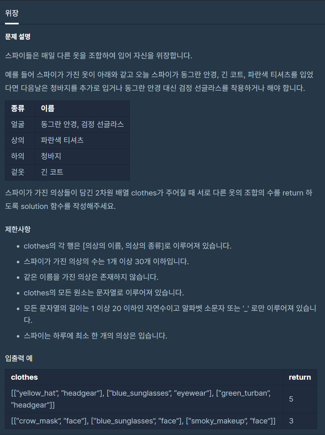 위장 (프로그래머스) 본문