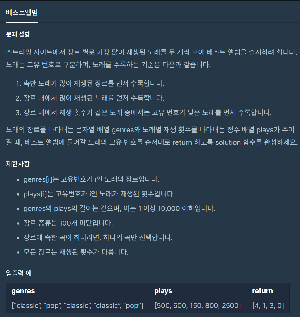베스트앨범 (프로그래머스) 본문