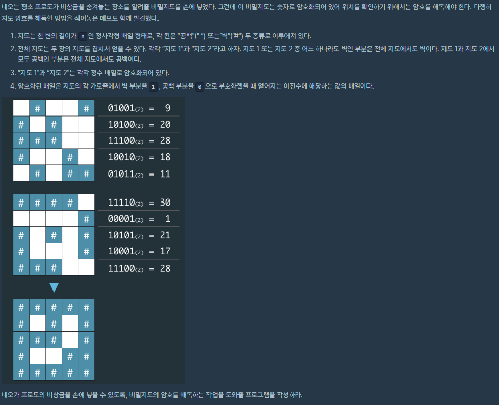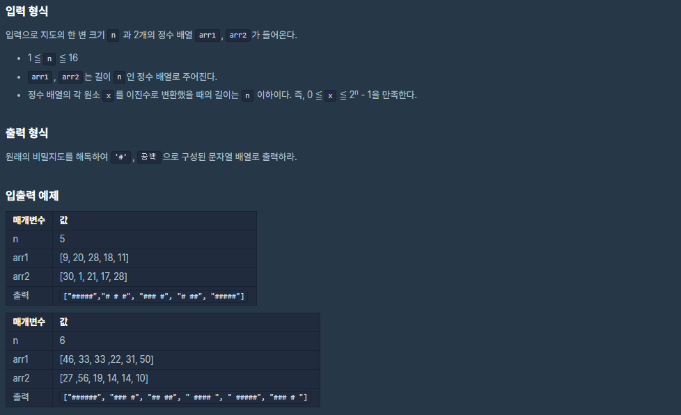 비밀지도 (프로그래머스) 본문