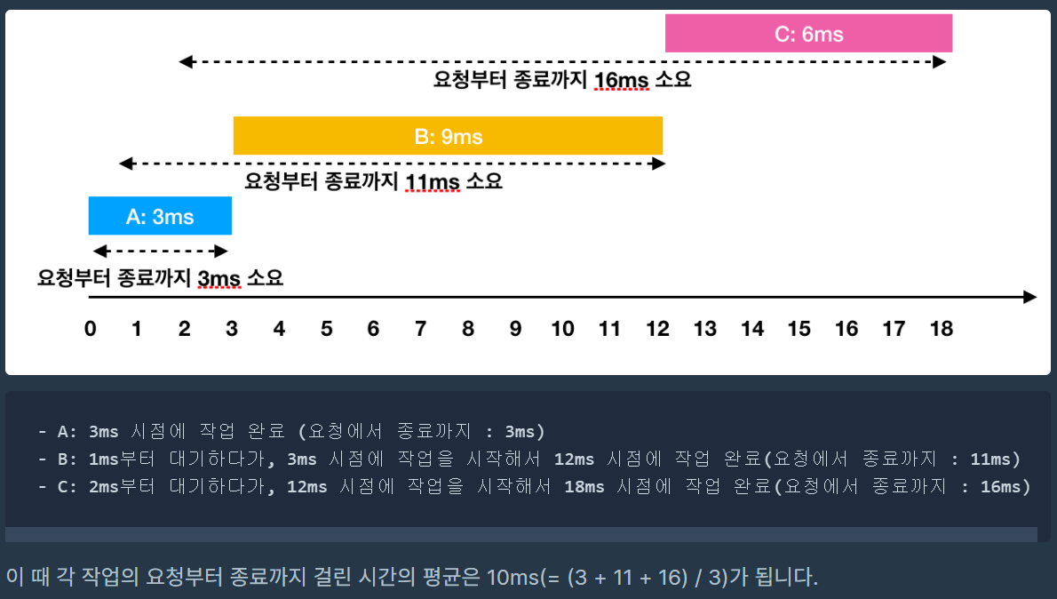 만약 없다면, 그 시점으로 부터 먼저 요청이 들어오는 작업으로 현재 작업 시간을 점프한다.