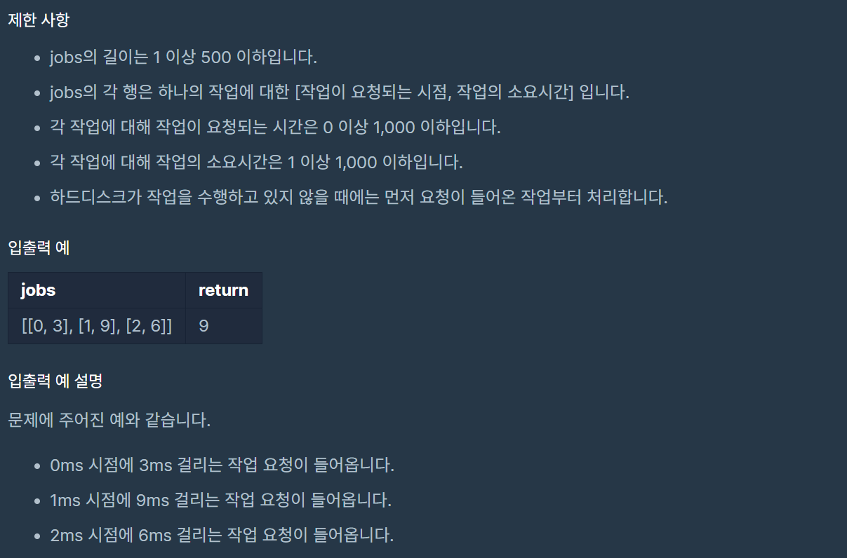 디스크 컨트롤러 (프로그래머스) 본문