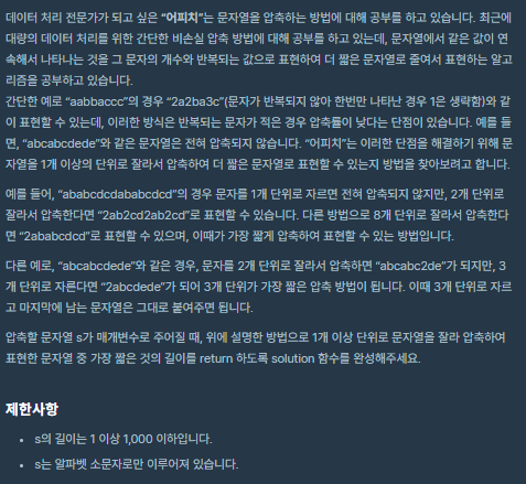 문제에서 요구하는 답은 압축된 문자열의 길이 이므로 직접 압축된 문자열을 만들어볼 필요는 없었다.