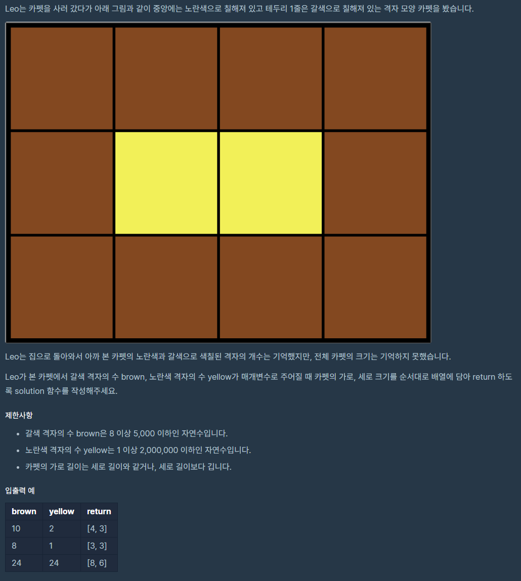 카펫 (프로그래머스) 본문
