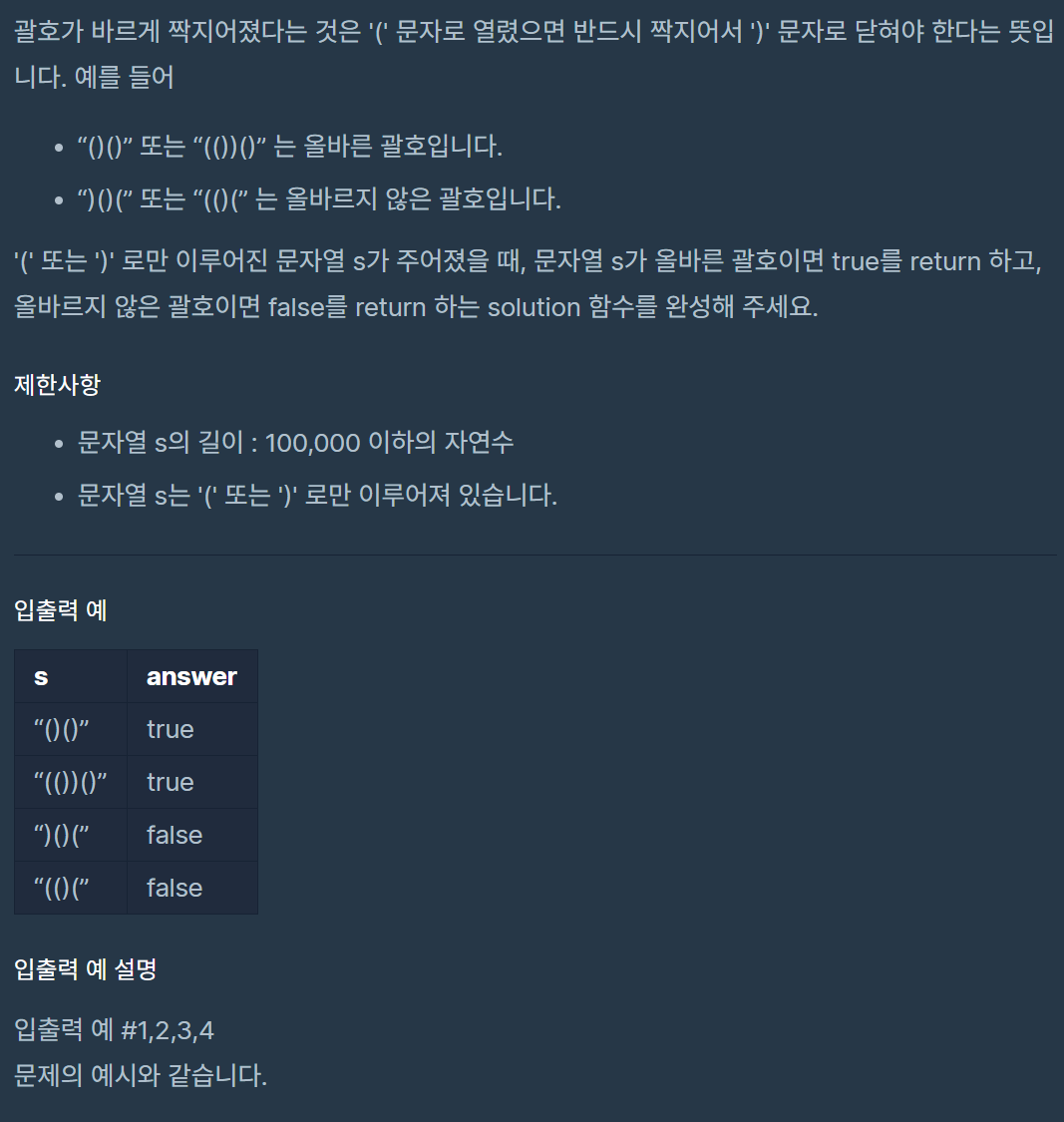올바른 괄호 (프로그래머스) 본문