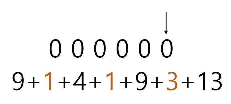 모든 값이 0이 되어 이름이 완성되었으므로 조작이 끝났다. 지금까지 기록한 조작 횟수를 더해주면 답이 된다. 9 + 1 + 4 + 1 + 9 + 3 + 13 = 40이 된다.