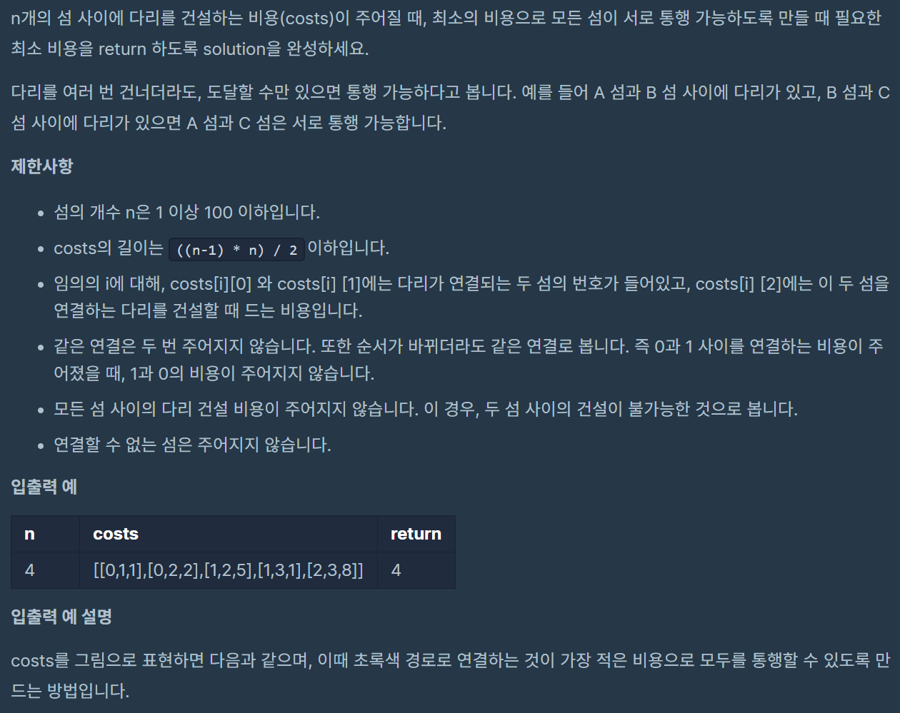 섬 연결하기 (프로그래머스) 본문
