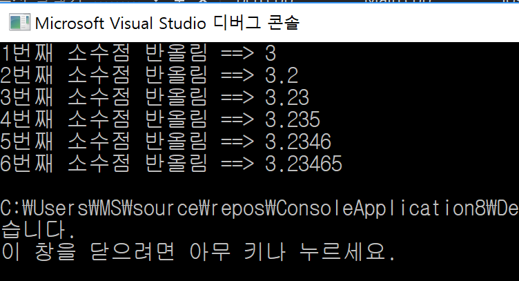 cout << "3번째 소수점 반올림 ==> " << round_digit(a1, 3) << endl;
