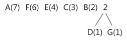 A(7개) F(6개) E(4개) C(3개) B(2개) D(1개) G(1개)