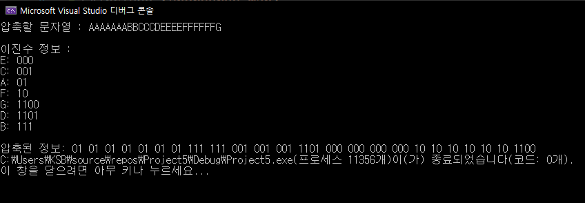 결과적으로 처음 입력받은 문자열을 해시 맵과 대조하여 압축된 2 진수를 출력한다.