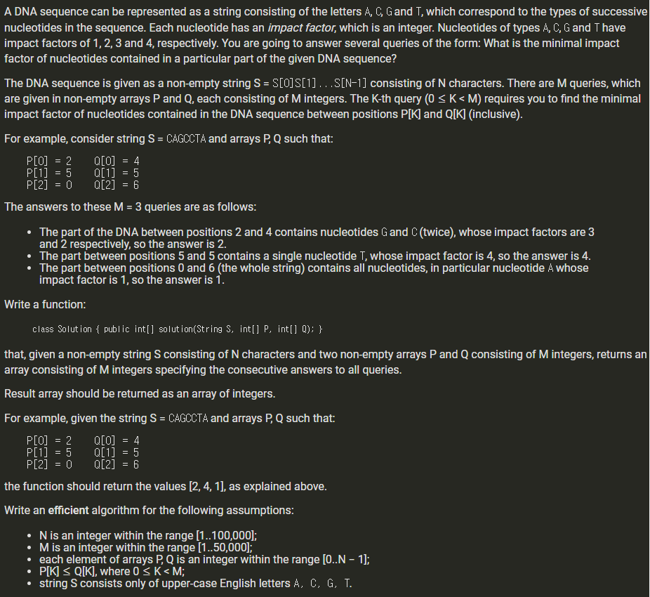GenomicRangeQuery (Codility) 본문