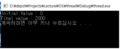 여기서 스레드는 같은 주소 공간에서 동시에 실행되는 함수를 말하는 것이다. 실행시켜 보면 지정한 loops의 값만큼 counter가 증가할 것이다.