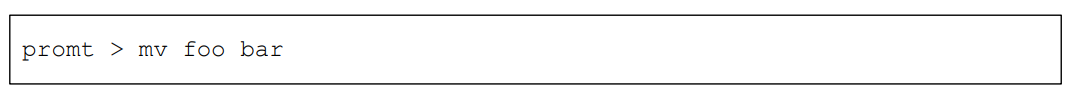 때로는 파일의 이름을 변경하는 것이 매우 유용하다. 명령 행에서 mv 명령으로 파일명을 변경할 수 있다. foo를 bar라는 새로운 이름으로 바꾸는 명령어는 다음과 같다.
