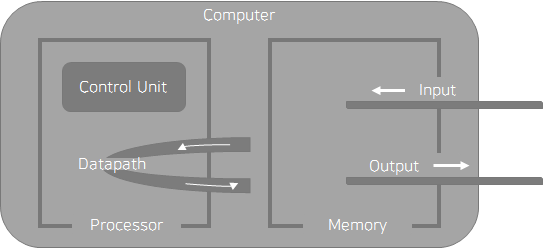 프로세서(CPU) : 데이터패스 + 제어 유닛, 프로그램의 지시대로 일을 하는 부분으로 연산을 수행하고 입출력 장치에 신호를 보내 작동을 지시