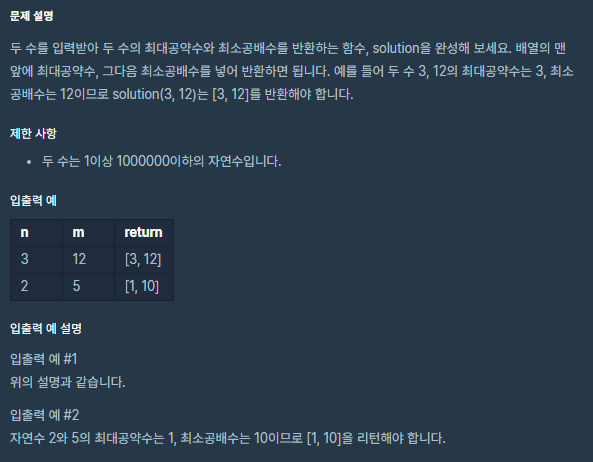 최대공약수와 최소공배수 (프로그래머스) - Java 본문
