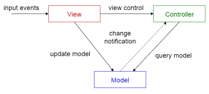 모델-뷰-컨트롤러 패턴은 서브시스템을 3개의 부분으로 구조화하는 패턴이며, 각 부분의 역할은 다음과 같다.