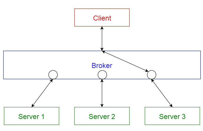 - 사용자가 원하는 서비스와 특성을 브로커 컴포넌트에 요청하면 브로커 컴포넌트가 요청에 맞는 컴포넌트와 사용자를 연결해준다.