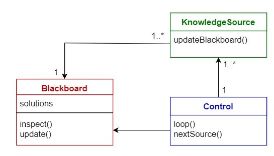 - 모든 컴포넌트들이 공유 데이터 저장소와 블랙보드 컴포넌트에 접근이 가능한 형태로, 컴포넌트들은 검색을 통해 블랙보드에서 원하는 데이터를 찾을 수 있다.