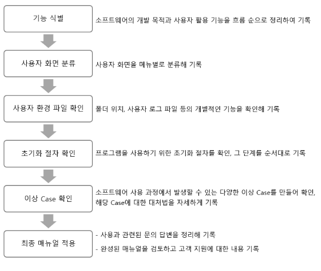 사용자가 소프트웨어 사용에 필요한 절차, 환경 등의 제반 사항이 모두 포함되도록 작성