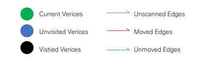 먼저, 정점 1에서 연결된 간선들을 통해 연결된 정점을 확인하면 2, 3, 7이 있다. 이때, 위와 같은 규칙에 의해 2번으로 이동하게 된다. 2번 정점에서 또 규칙에 의해 3번으로 이동한다. 이와 같은 식으로 이동하다보면 1 - 2 - 3 - 5 - 7- 6 - 4 순으로 방문한다.