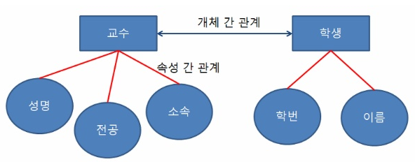 관계에는 개체 간의 관계와 속성간의 관계가 있음