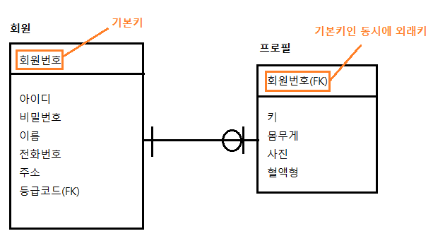식별관계 : 개체 A, B 사이의 관계에서 A 개체의 기본키가 B 개체의 외래키이면서 동시에 기본키가 되는 관계