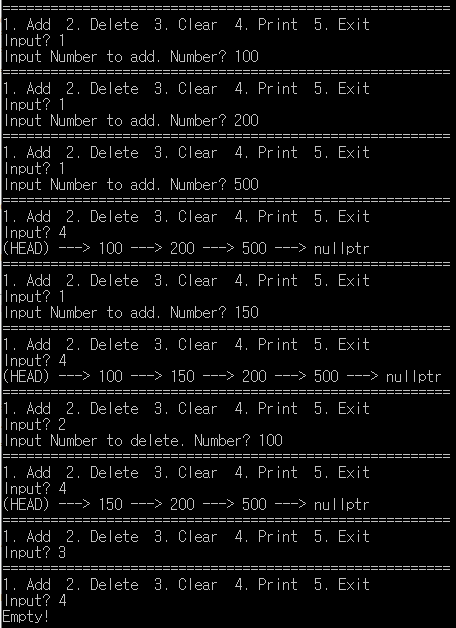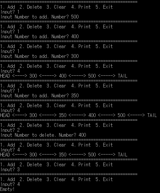 데이터 삭제 : 원하는 삭제 데이터를 입력하면 리스트에 존재하는 경우 삭제한다.