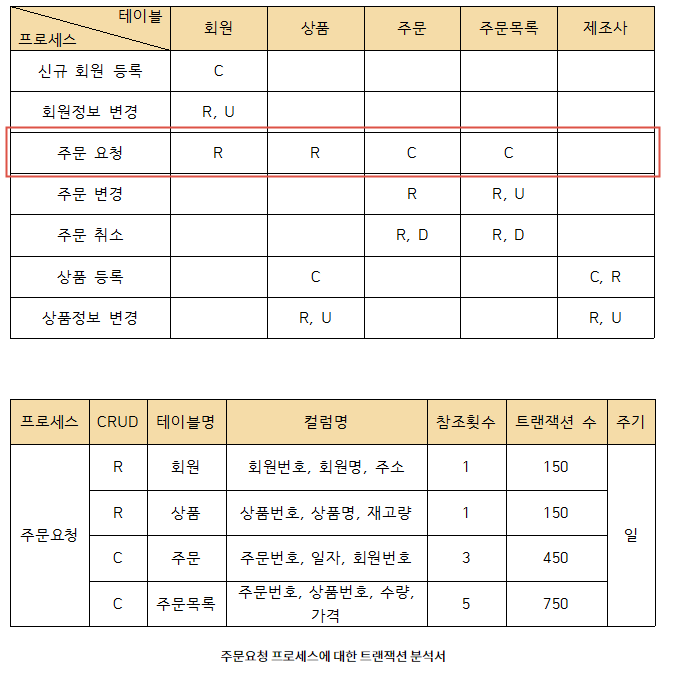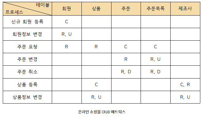 CRUD 매트릭스를 통해 프로세스의 트랜잭션이 테이블에 수행하는 작업을 검증