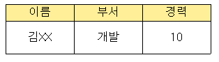 -> 경력이 10년 이상인 사원의 이름, 부서, 취미활동을 검색하는 SQL문