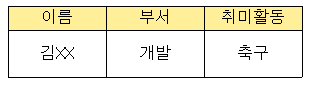 -> 취미 테이블에서 취미활동이 축구인 사원 이름의 튜플을 검색하는 SQL문