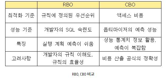 RBO(Rule Based Optimizer) : 규칙 기반 옵티마이저