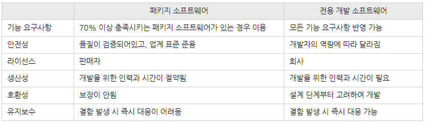 패키지 소프트웨어와 전용 개발 소프트웨어의 비교