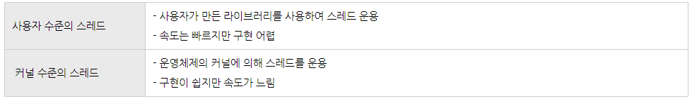 하나의 프로세스에 하나의 스레드가 존재하는 경우에는 단일 스레드, 하나 이상의 스레드가 존재하는 경우에는 다중 스레드