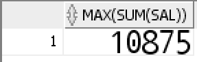 오라클에서는 그룹함수를 2번까지 중첩해서 사용할 수 있다.