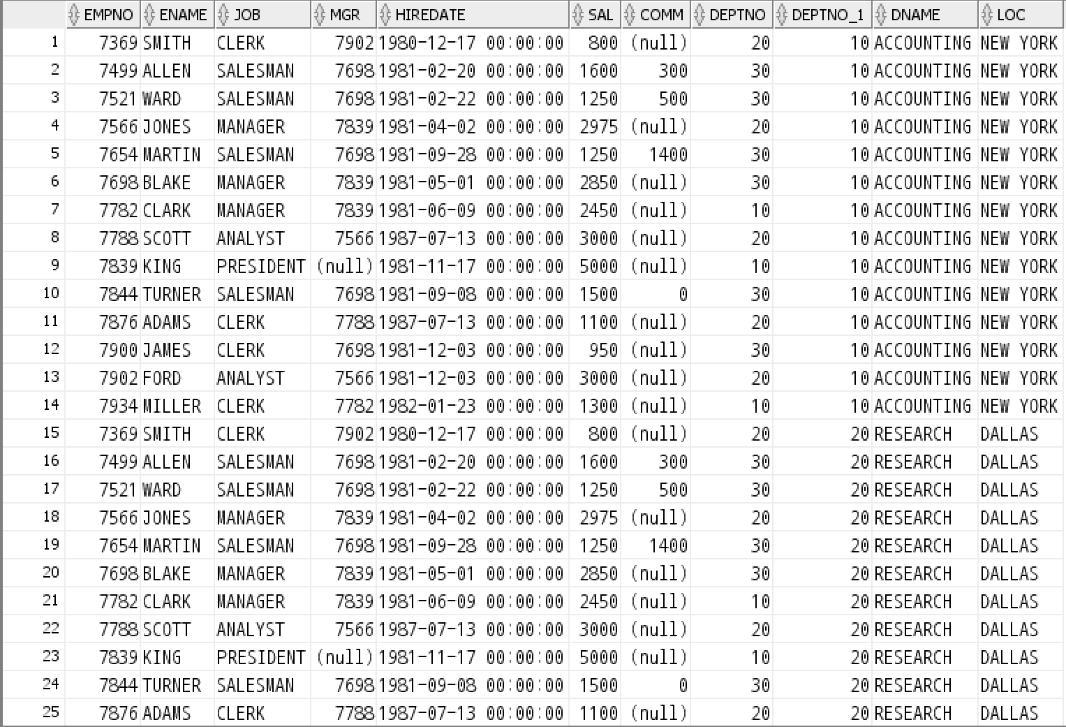 WHERE EMP.DEPTNO = DEPT.DEPTNO;