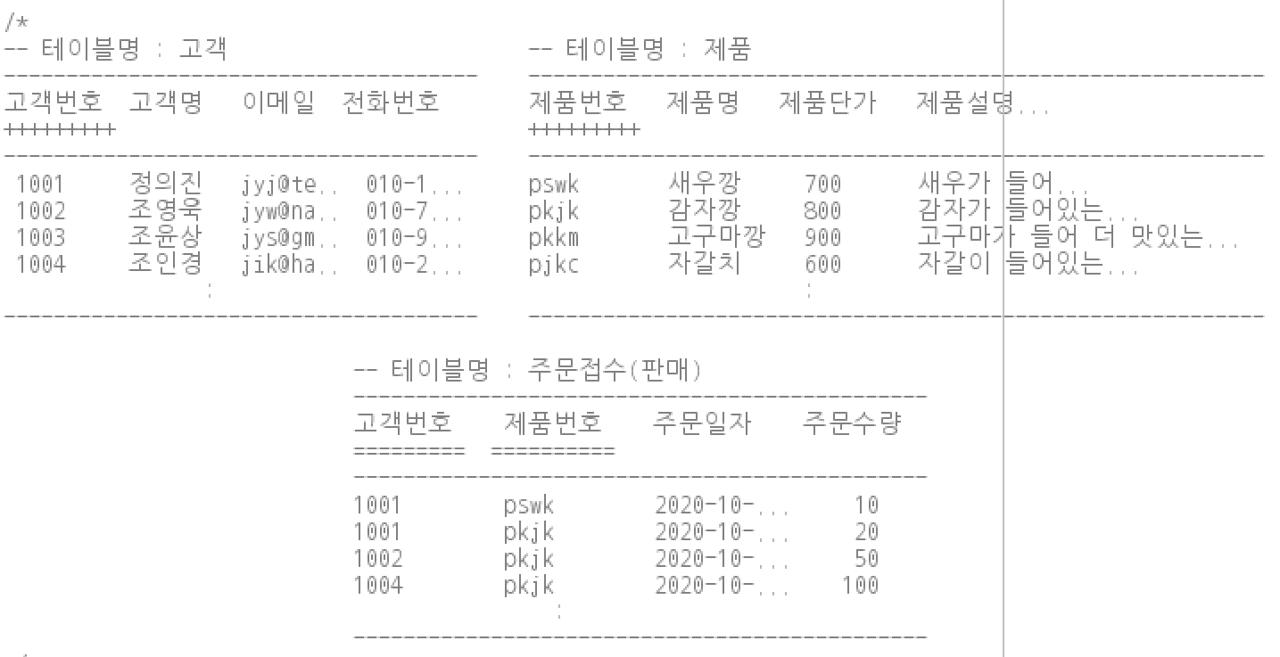 다음과 같은 테이블들이 있다고 가정하자.