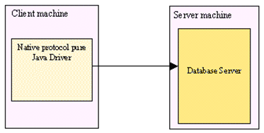 Database Engine에 사용되는 Network Protocol을 Java Socket으로 직접 Database에 교신하는 방식이다.