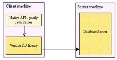 각각의 데이터베이스 제조 업체들이 제공한 C 혹은 C++ 메소드를 자바 코드로 호출하는 방식이다.
